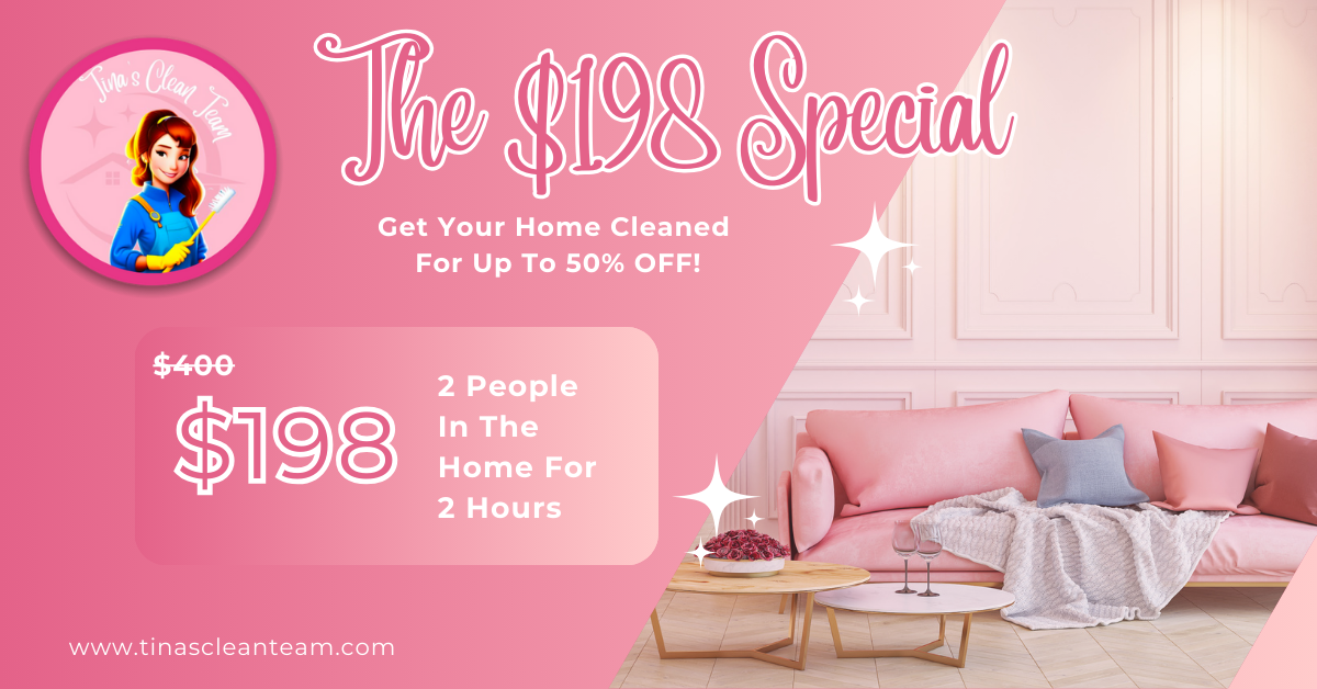 Try Our New Special 2 Hour Cleaning. Ideal for 2 Bed/2 Bath home. Save over $200 when you book our new promotion.